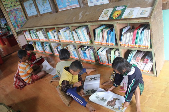 ウンピアム難民キャンプの図書館をのぞいてみると、今日も子どもたちが本の世界に入り込んでいました。