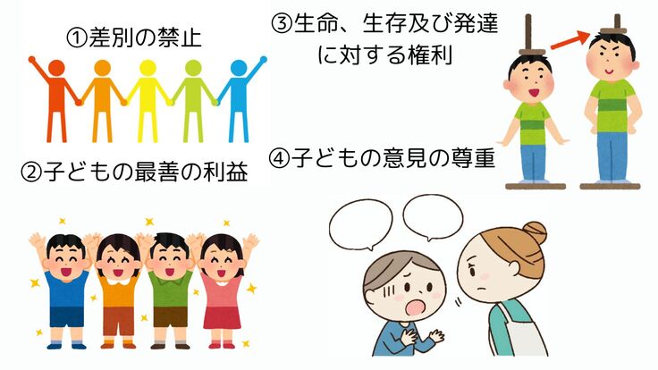 この条約には、あらゆる子どもの権利の実現を考える時に合わせて考えることが大切な4つの原則があります。