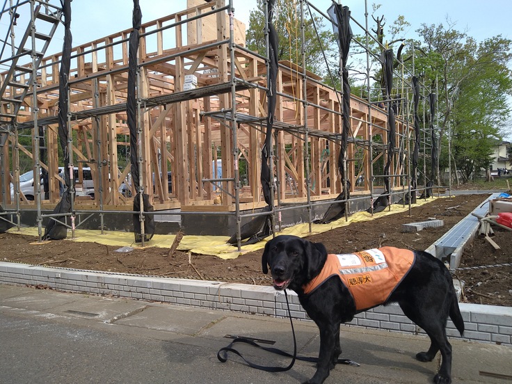 PR犬ヒマワリも、足元の安全が確保されたので、上棟式を見学しました。