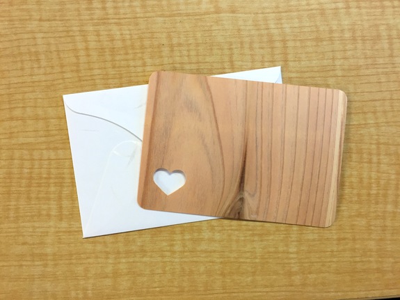 ご協力して下さった皆様に間伐材で作ったメッセージカードでお送りします。