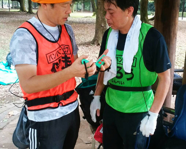 それが、ウエアラブル指点字ツールです!このツールを用いれば、スポーツなどをしている時にも他者と会話し、リアルタイムでまわりの状況を確認することができます。Bluetooth遠隔操作式で100メートル離れた場所からの通信も可能なので、様々な応用が考えられます。すでに実用化しており、昨年から試作機を使って、実際に盲ろう者の方々と会話しながらランニングなどを楽しんでいます。盲ろう者交流イベント等で体験していただいた方々の多くは、ツールを使ってスポーツなどを楽しみたいと仰っています。
