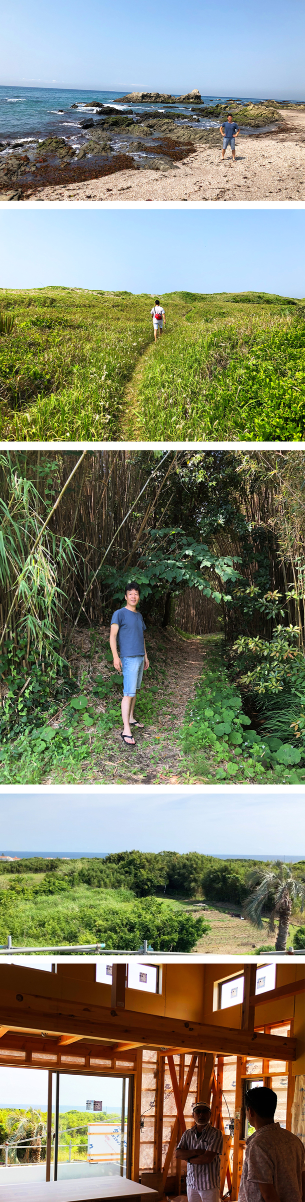 海を臨む二階ベランダで存分に潮風に吹かれるのは本当に気持ちがいいです。目の前の林や農道を抜けていくと、数分で、まるでプライベートビーチのような海岸です。