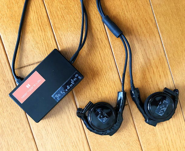 ウエアラブル指点字ツールの進化系、”耳点字”ツールの試作品です。イヤホン型のインターフェースで、左右の耳たぶの上中下の部位を振動させる事で指点字同様のコミュニケーションが可能です。手袋式よりも更にハンズフリー、ストレスフリーです。6点の弁別ができれば体のどこでも構いません。ブルートゥース遠隔通信なので100メートル程離れていても使用可能です。目的や状況に応じて、様々な応用が考えられます。