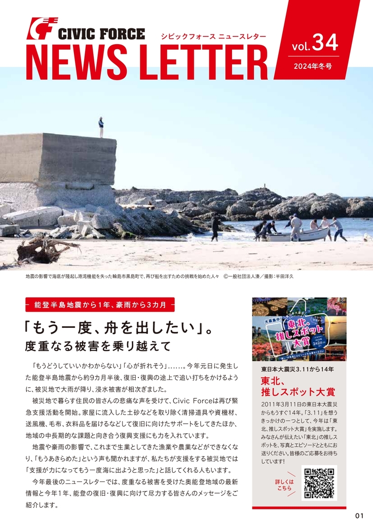 ※Civic Forceニュースレターは、寄付者の皆様に被災地での支援活動や被災した地域の「今」をお伝えするために発行しています(年3〜4回)。なお現在、月に1回程度お届けしているメールマガジンをご一読いただく読者の方を募集中。ご希望の方は、こちらからお申し込みください。