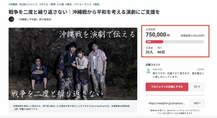 この「復帰の日」に目標金額の30%を達成できたこと、感じ入るものがあります。