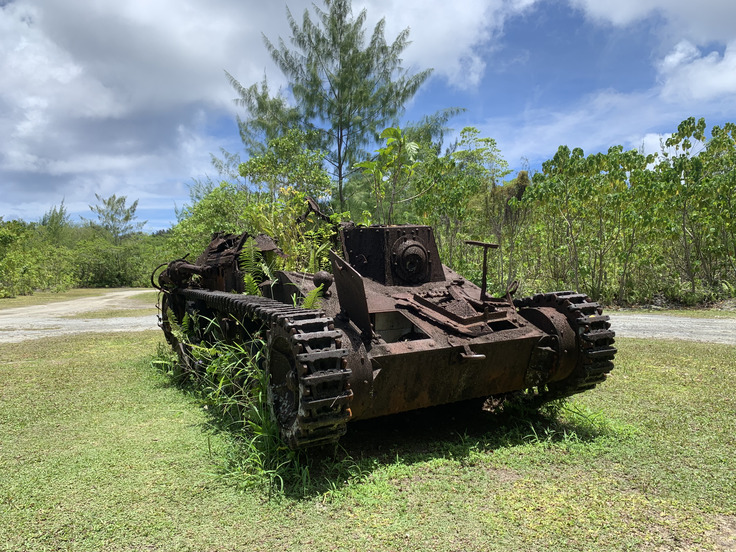 ペリリュー島には、日米両軍の戦車や、日本軍の零戦、大砲などが残されています。