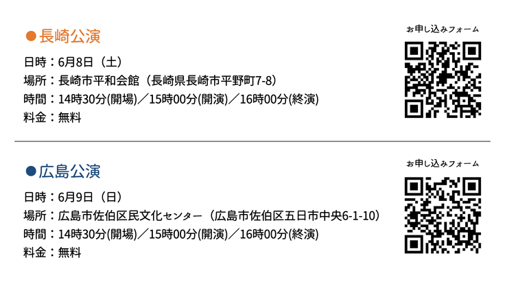 長崎・広島の公演、集客がまだひと桁という状況ですので、近隣の方がいらっしゃいましたらぜひお声がけくださいませ!