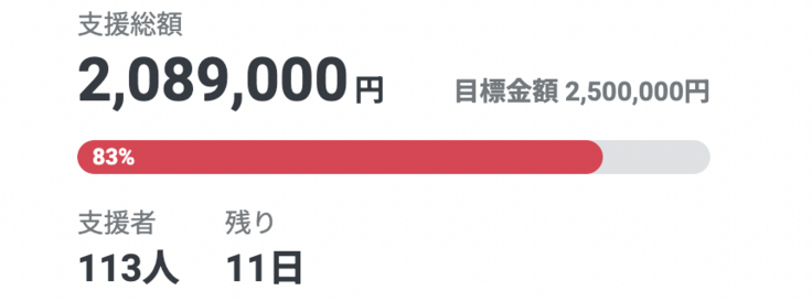 プロジェクトの達成まで、のこり50万円ほどになっています。