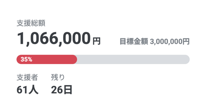 3月5日17:00時点で106万6千円のお力添えをいただいています。