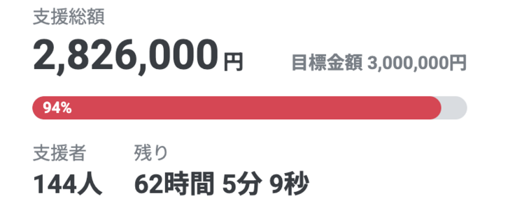 3月29日(土)9:00現在、目標金額の90%を超えるご支援が集まりました!