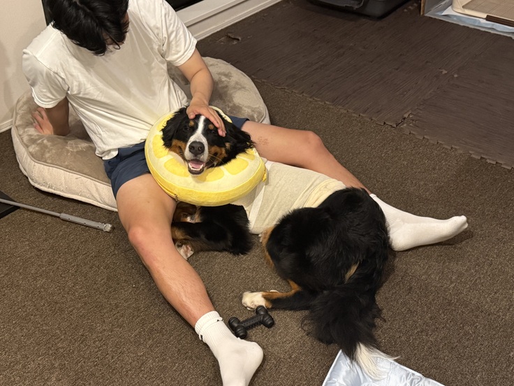 麻布大学の先生たちのおかげで退院することができました。会社の同僚の方より、とうたの目を見て元気になると思いました!と嬉しい言葉もいただけてましたが、無事退院しました。