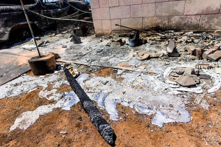 わずかに残ったコンクリート塀も少し手で押せばボロリと崩れるほど熱によって劣化しています。「今見えている焼け残りも、どのみちすべて取り壊さないといけない。クレイジーな話だよ」地元の若者たちが話を聞かせてくれました。