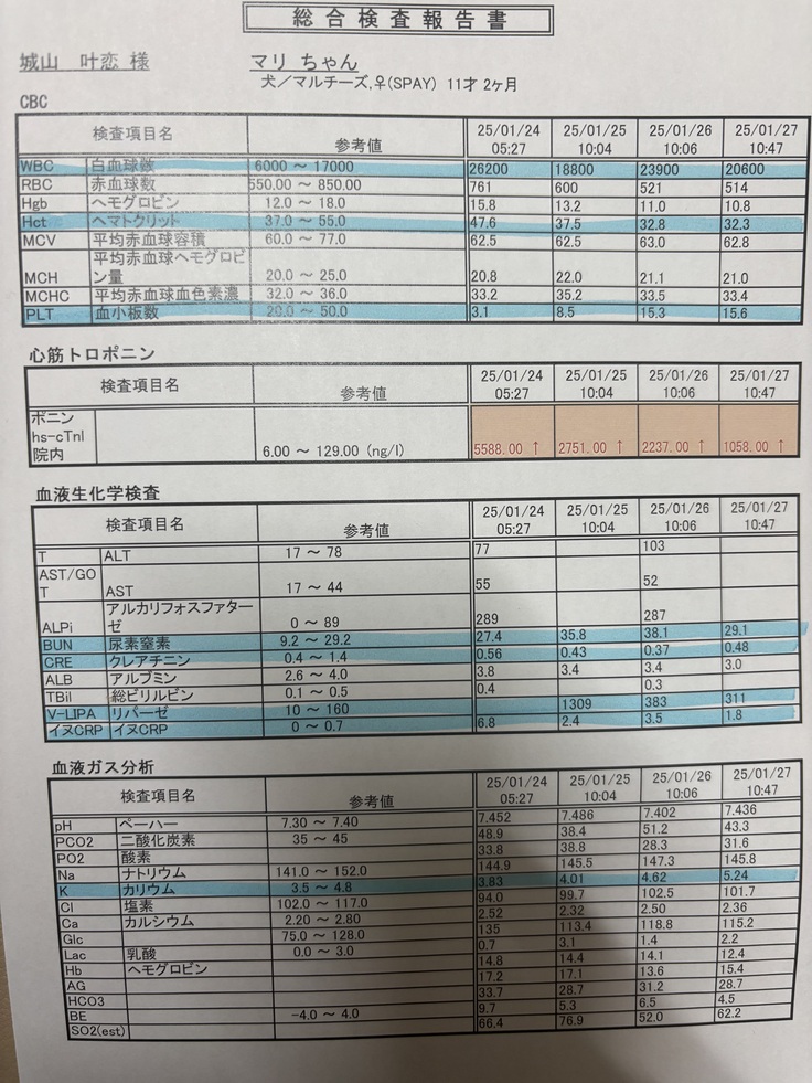 膵臓の値が術後高かったもののそれもだんだんと下がってきてくれていて、炎症の値も低下してくれているようです!
