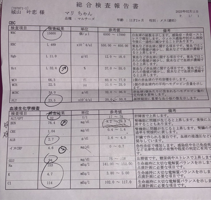 恐れていた腎臓へのダメージがやっぱり出てしまったことにより、マリは、今後も点滴や、通院、血液検査など、さらなるケアが必要になる可能性が高いです。