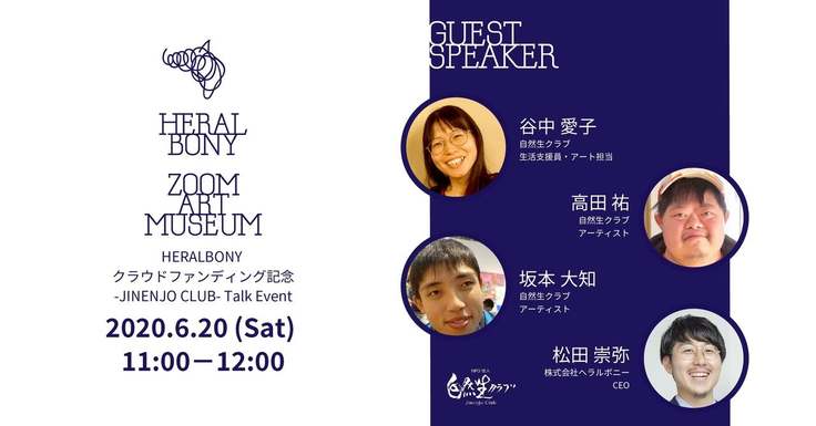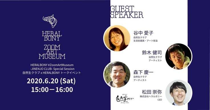 連日、多くの方々にご来館いただいているHERALBONY #ZoomArtMuseum -JINENJO-展を記念して、6月20日(土)15:00からスペシャルトークショーを開催します。