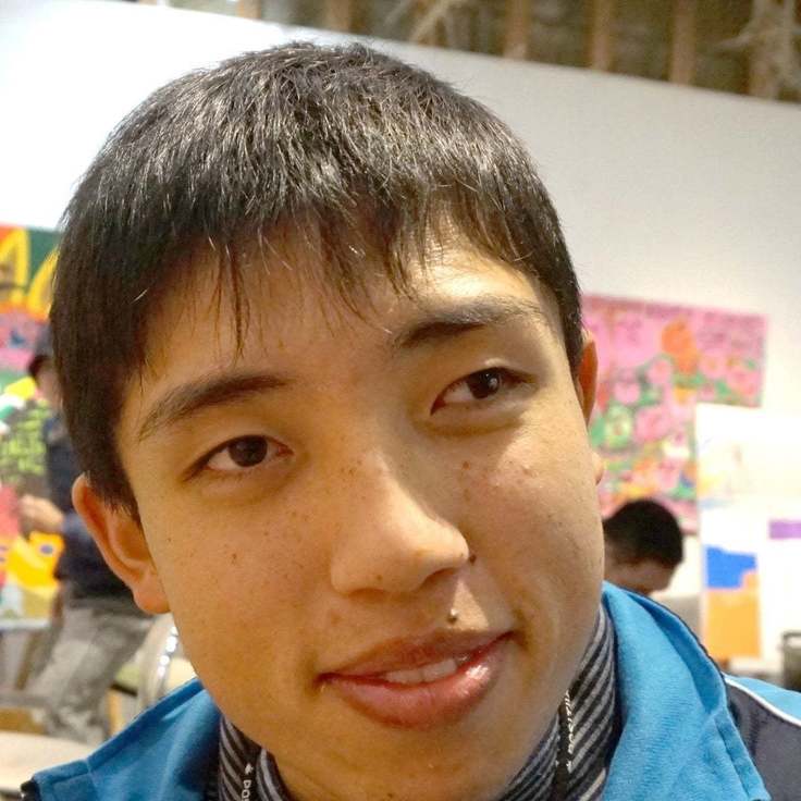 茨城県立美穂特別支援学校卒業後、2016年に自然生クラブに参加。温厚な性格でユーモアがあり、どんな仕事にも責任をもって取り組む。創作田楽舞では2019年の香港公演に参加。自由でのびやかな感性を持ち、太鼓を叩いたり、ダンスや歌を歌ったりする。絵画では「筆を滑らす動き」を重視し、ダンスと融合している印象を与える。形に着目し、何度も形をなぞって描き上げた「土偶」(2019)は、好評で、市役所の市長室控室に展示された。