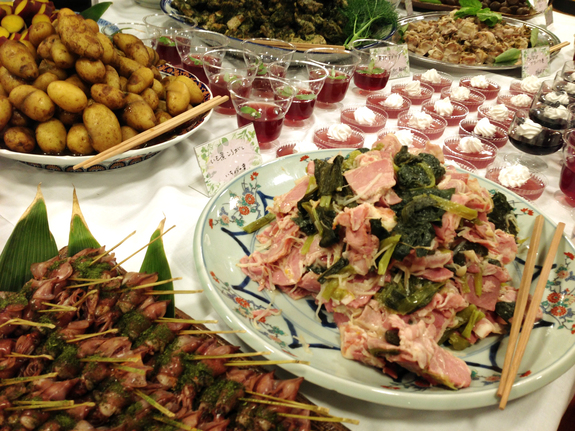 (写真は懇親会で振る舞われた、薬草料理。苦みをうまく中和させるのがコツ。)