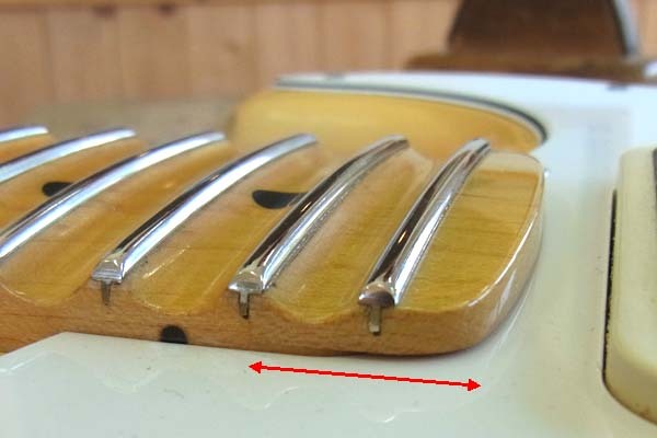 専門的な話になりますが、上の写真の赤矢印の部分のような加工で1フレット増設です。