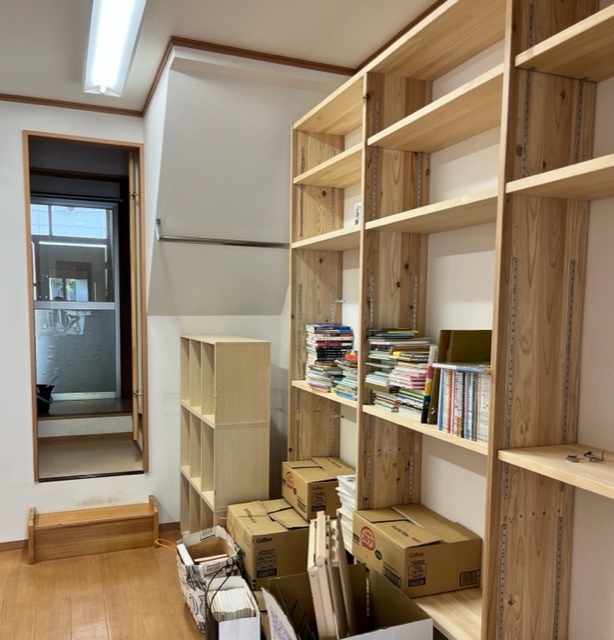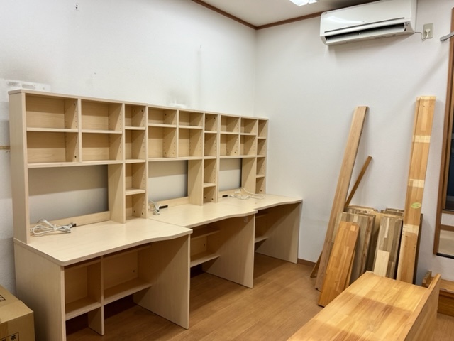 現在、書棚が完成し、前の場所から学習机を運んできたところです。