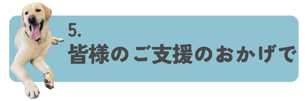 協会のすべての犬たちの健やかで幸せな犬生のため、視覚障がい者の皆様の自立と社会参加増進のためご協力くださいますよう、心よりお願い申し上げます。