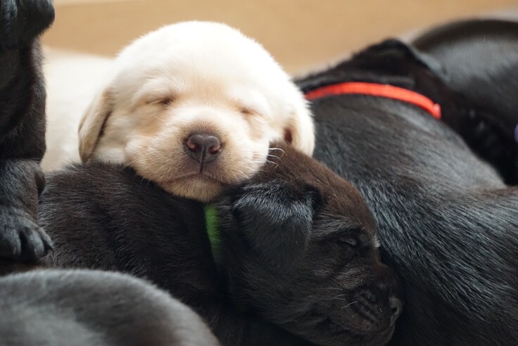 盲導犬は「繁殖犬」と呼ばれるお母さん犬、お父さん犬から誕生します。そして、生後2か月になるまでは、お母さん犬や兄弟犬と共に犬社会のマナーを学びながら育ちます。