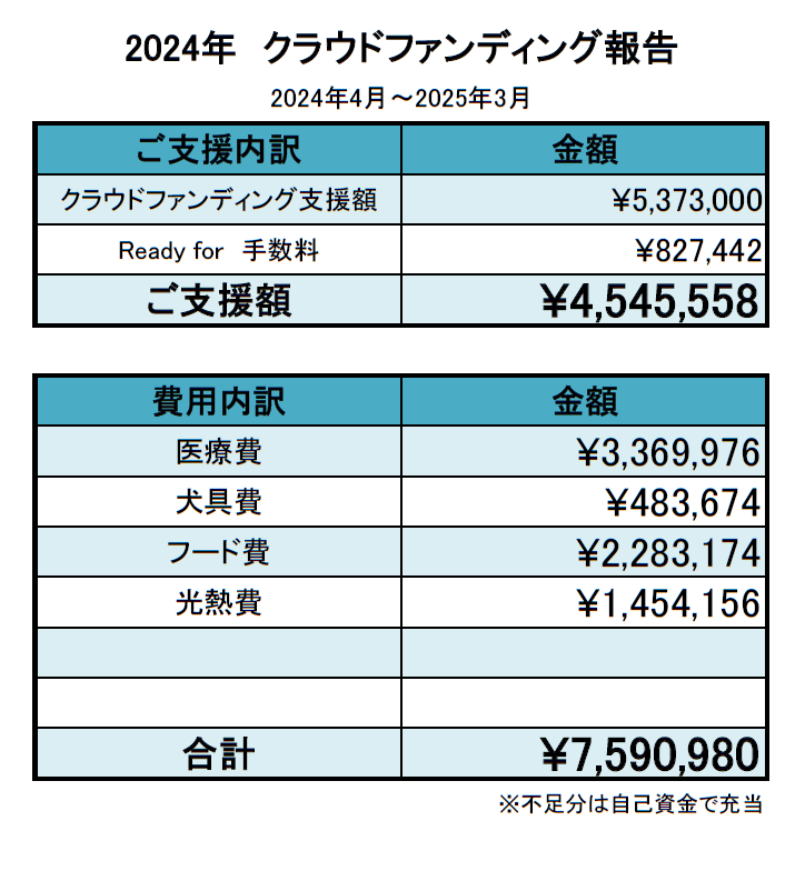 繁殖犬/パピー/訓練犬/PR犬 たちの「医療費」「犬具費」「フード費」「光熱費」として活用いたしました🦮🦮🦮