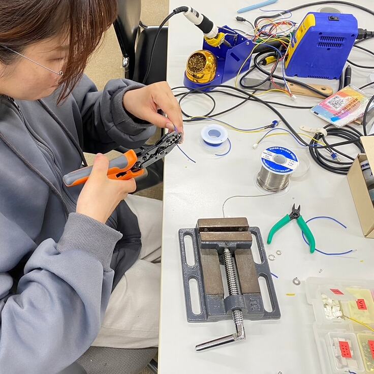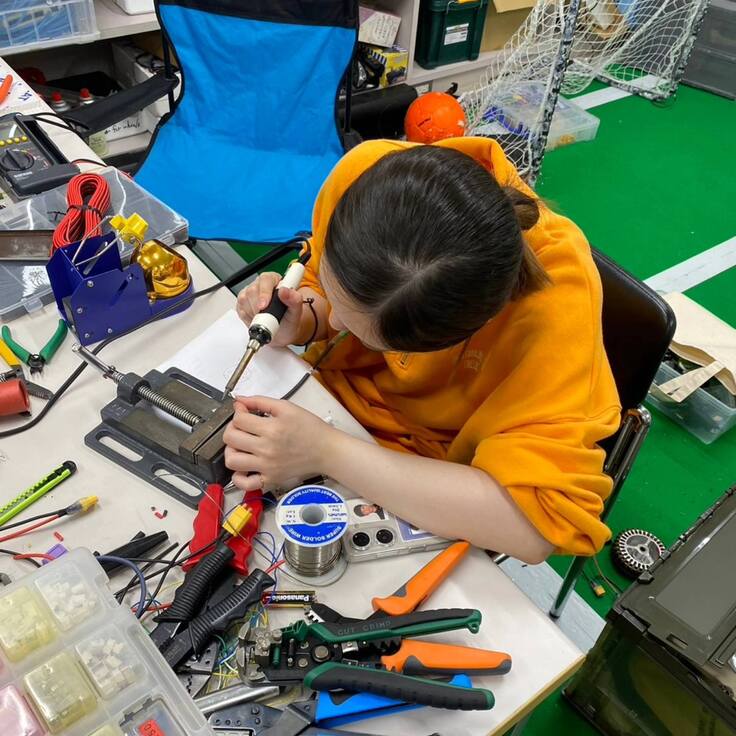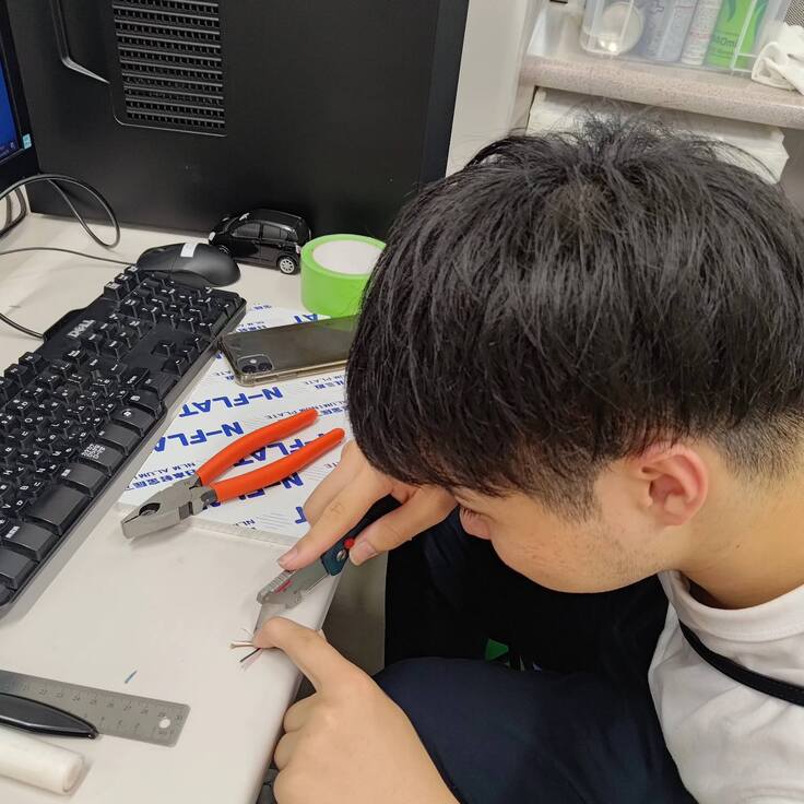 RoboCupに携わさせて頂けるまでは、工業らしい活動は出来ていませんでした、、はんだごてを触るのも中学生以来で。でも、最近は慣れてきて1人でもケーブル類の作成を出来るようになってきました