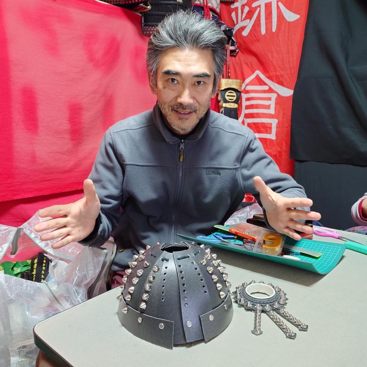 大鎧が出来てより、兜の製作に取り掛かっておりまして、材料は異なりますが、極力当時の作り方を追求して兜の製作に挑んで、ようやくに間もなく完成と言うところまでこぎ着けました。