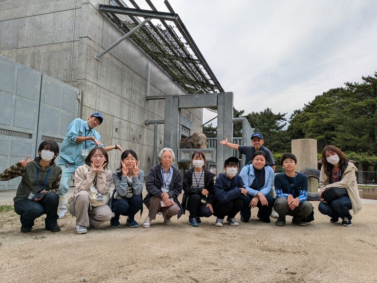 プログラムの最後は、直前までふじ子さんがいた放飼場に入っての記念撮影📷。