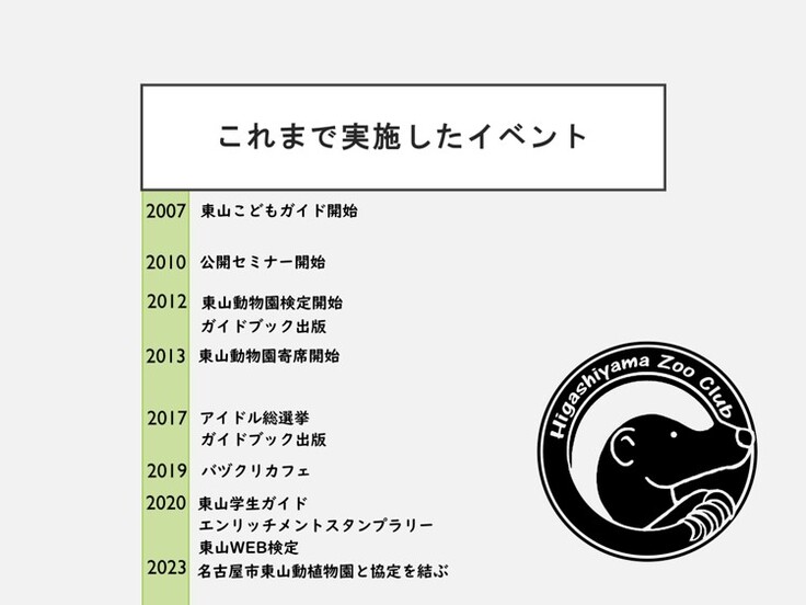 また、東山動植物園と協働で市民参加型の事業を展開することで、地元の動物園である東山動植物園を盛り上げることも目的の1つとしています。