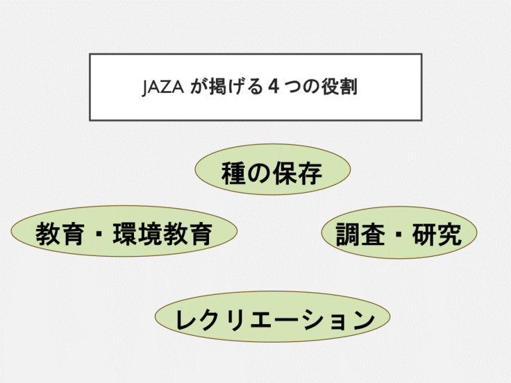 日本動物園水族館協会(JAZA)が掲げている4つの動物園の役割のうちの1つに、「教育・環境教育」 があります。