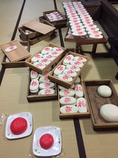 上が福餅と紅白の鏡餅、下が「投げ餅」です。