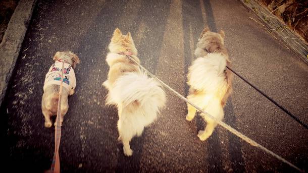 今では家族の一員として、同じく保護犬である柴犬とヨークシャテリアと仲良く暮らしています。