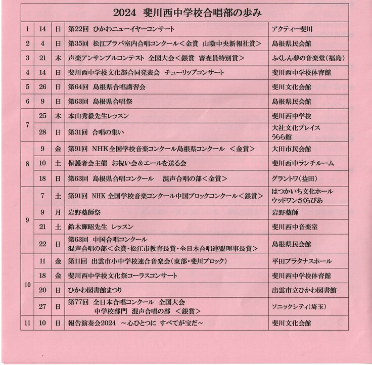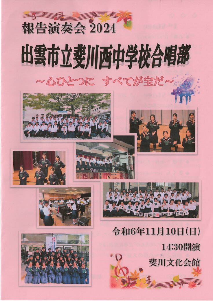 一昨日、斐川西中学校合唱部による報告演奏会が行われました。