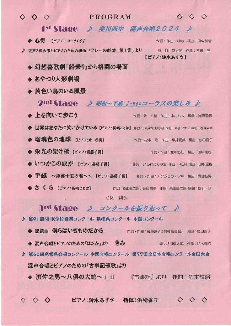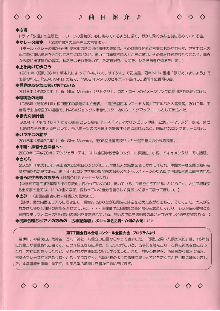 まずは、一昨日の報告演奏会のパンフレットの一部を下記に掲載させていただきます。