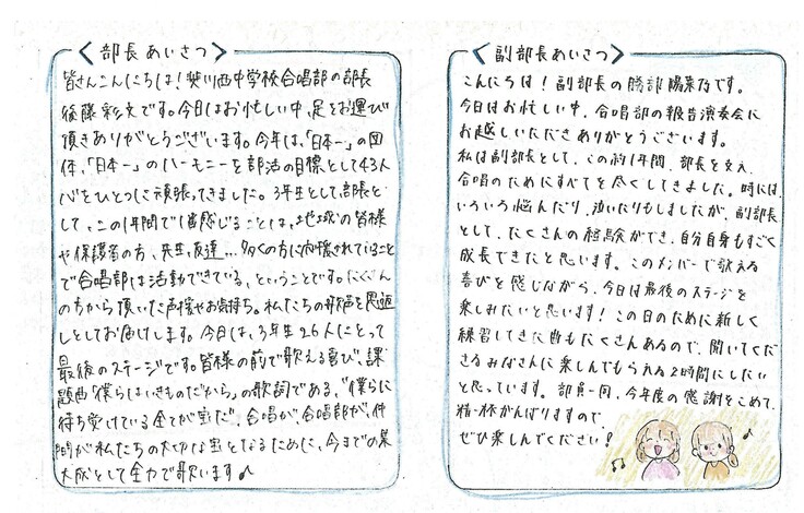 残念ながら会場には足を運べなかった方々へ、少しでも生徒さんの感謝の想いが伝わればと思い、