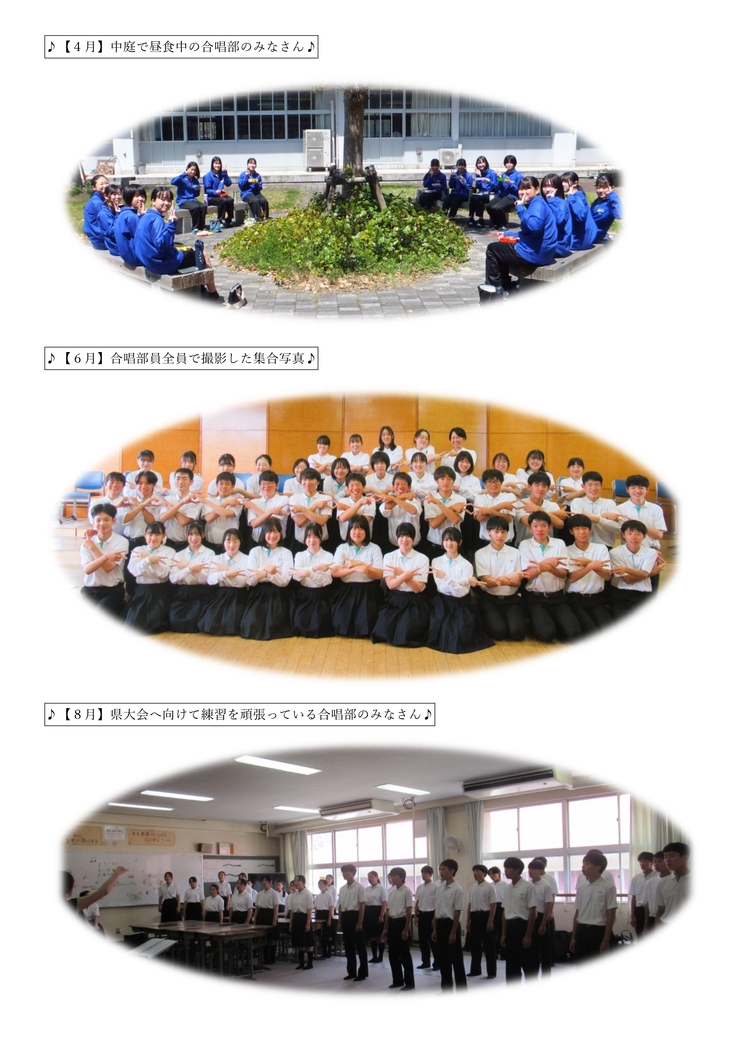 今までの活動報告では、報告できていない部分のほんの一部でしかありませんが、合唱部の皆さんの喜びや楽しみ、頑張りと苦労など努力し、培ってきた証を少しだけ『番外編』としてご紹介させていただきます。