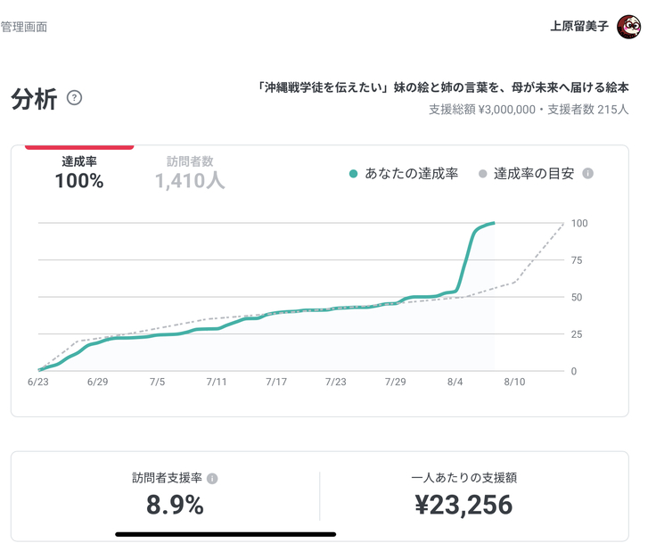 一つ一つの応援が確かに届き、この達成を作り上げていただいたと心から感謝しています。