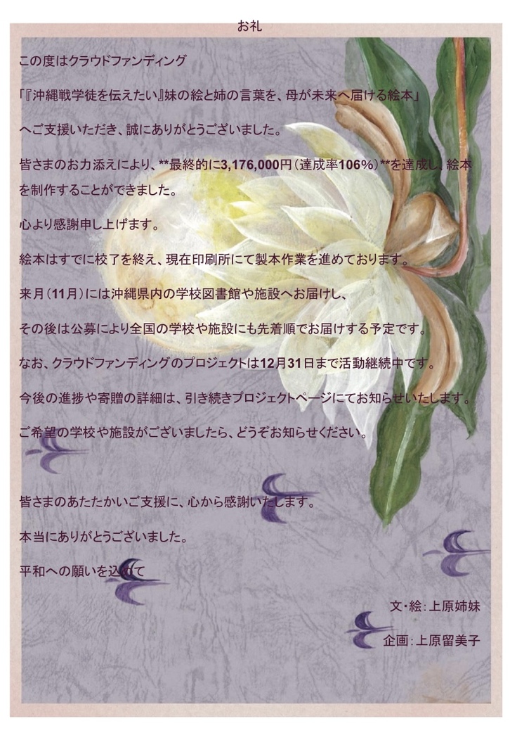 また、複数口ご支援いただいた皆さまには、パターンの異なるお礼状や絵カードもご用意しています。