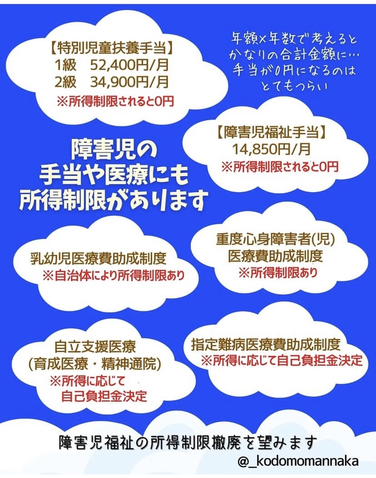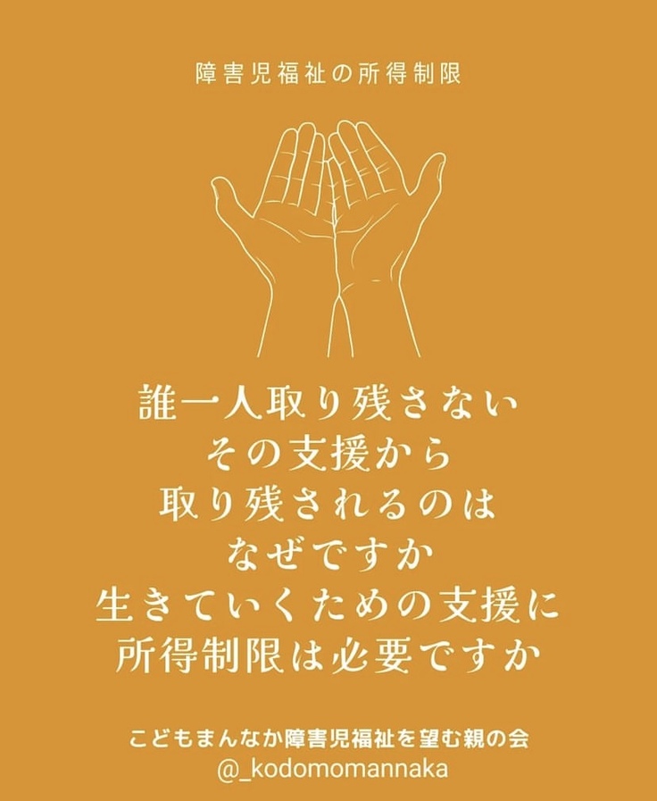 障害児福祉にも所得制限をかけないで欲しい。私たちのこどもも支援の輪に入れて欲しい。