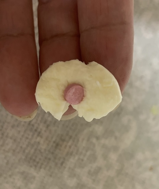 お肉に巻いて隠したり💦色々やってみましたがチーズの中に埋め込むのが一番バレないと言う結果になりました💦😂
