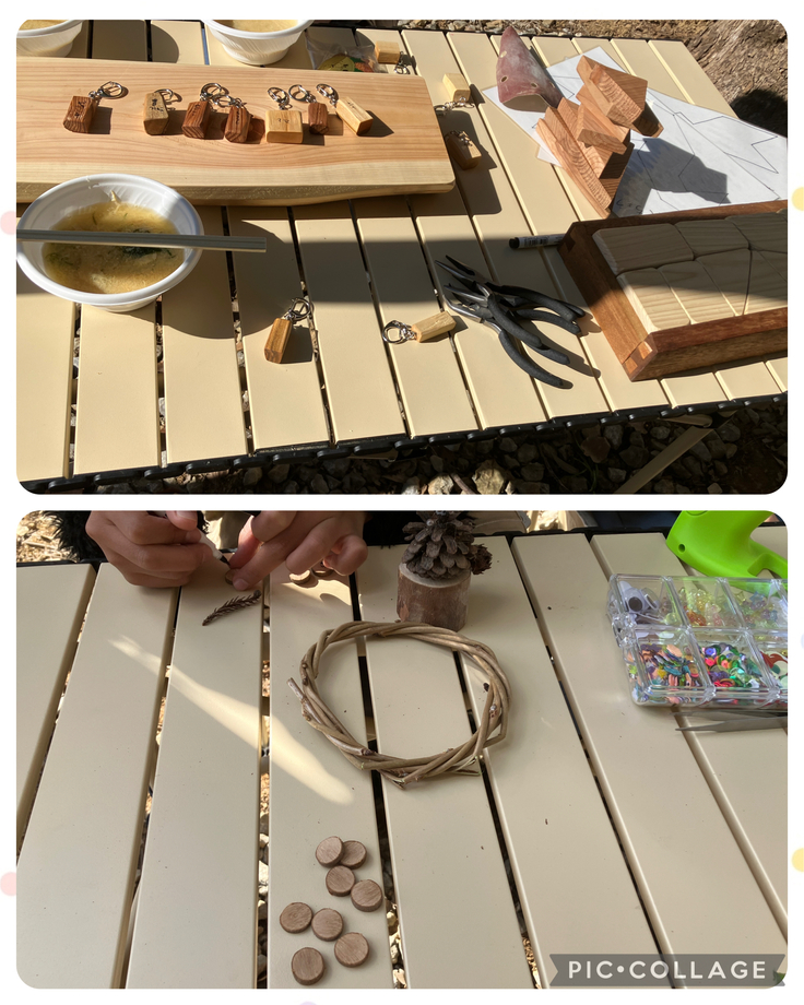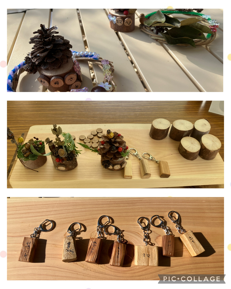 今回は松ぼっくりや木の素材を使用した小物づくりのワークショップを開催しました。