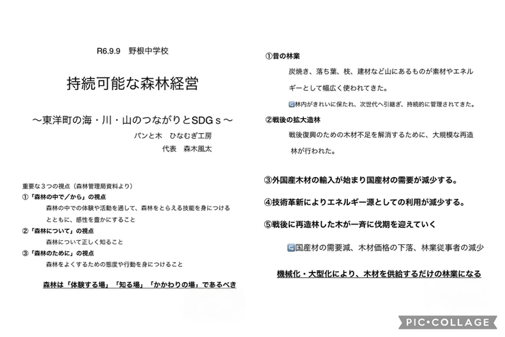 R6.9.9 東洋町立野根中学校 森林学習 講和