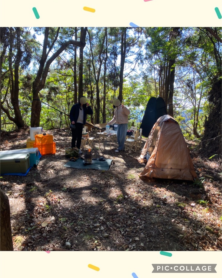 野営は初ということで、セッティングと火起こしまで付き添い、あとは時間まで2人でワイワイ過ごしました。