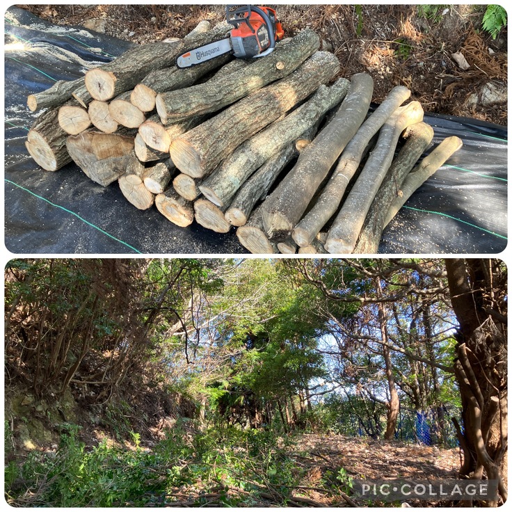 そのカシの木と私が伐採したコナラの木でシイタケの原木栽培を行なっていく流れとなっています。