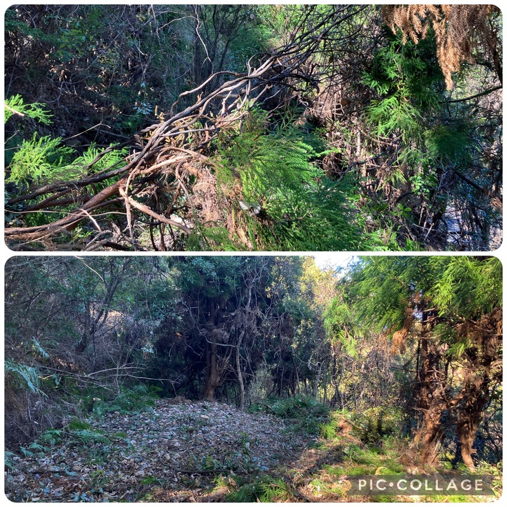 カズラの巻き付きがひどく、どの木も一発では倒れませんでした。