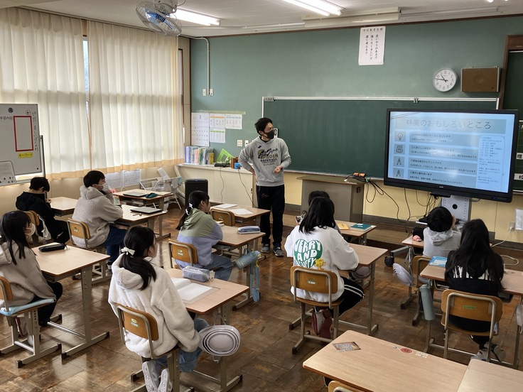 今日は、現在支援員として勤務している甲浦小学校の5年生を対象に森林学習の講話を行いました。