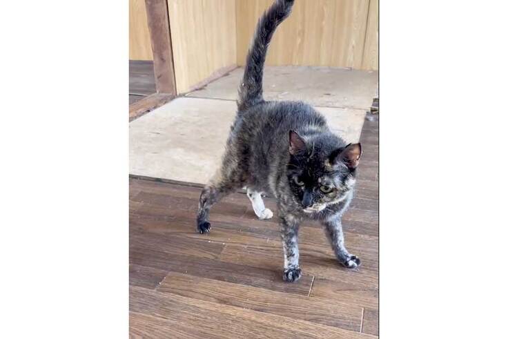この子の年齢は推定10歳ほど。盲目で、目が回ったり、足がしっかり動かなかったりするため、シェルターで保護いたしました。目が見えていないため、触れられると怖いのか『シャー!』と威嚇します。この子は里親募集はせず、保護猫hinataboccoで看取りまで責任をもってお世話をしてまいります。