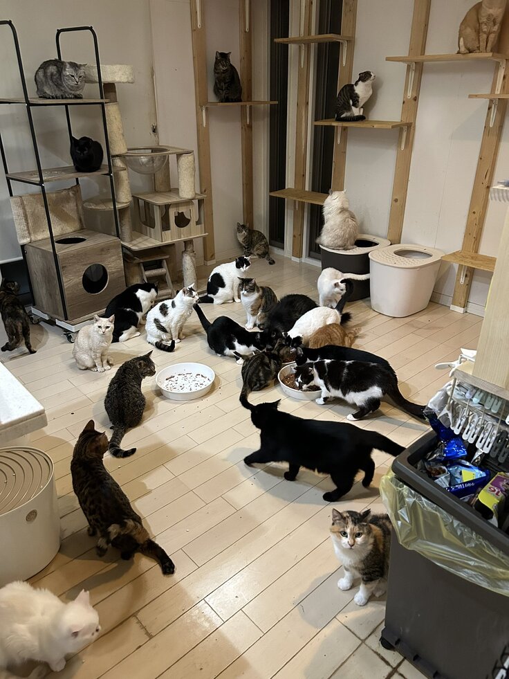 自宅のシェルターの様子(すでに猫たちでいっぱいです)