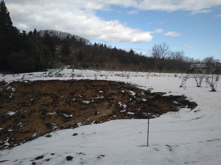地震で崩れてしまった畑の一部ですが、
